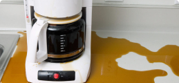 - Протечки под аппаратом. Нужно выяснить, откуда под кофеваркой появилась вода. Посмотрите, не засорен ли каплесборник либо лоток. При необходимости очистите элементы. Также мог засориться или перегнуться сливной шланг. Еще одна причина – неправильная установка агрегата, нужно выставить его по уровню, отрегулировав ножки.
